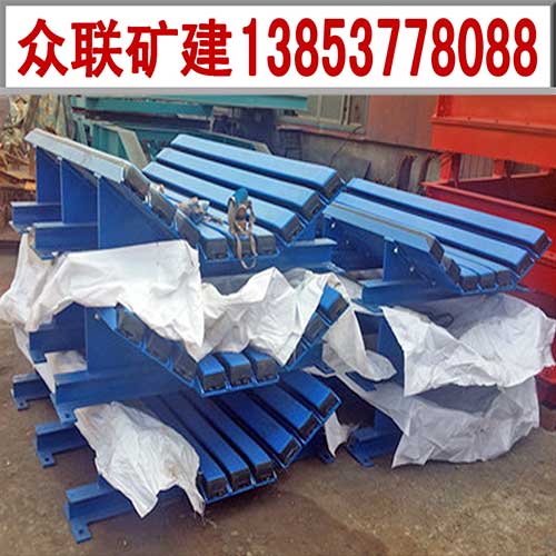 缓冲床主要用于替代缓冲托辊,对皮带机输送带起保护作用,延长输送带的使用寿命。缓冲床是由缓冲条和支架组成的,缓冲条主要应用优良的高弹性特种橡胶层充分吸收物料下落时的冲击力,大大降低了物料下落时对输送带的冲击,真正改善物料点的受力状况,采用特殊UHMW高分子聚乙烯表面,使输送带与缓冲条之间摩擦系数降到最低,且耐磨性好。缓冲床的使用保证了输送带的面与面的接触,受力均匀,有效的防止了由于托辊断裂脱落造成的皮带纵向撕裂,同时大大降低了皮带被锐器或尖锐物料穿透后纵向撕裂的概率。